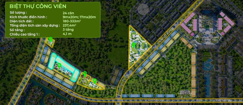 | Biệt Thự Công viên | 180-333 m² | Diện tích sàn: 237 m² | 24 căn | 3 tầng | ... tỷ/căn |
